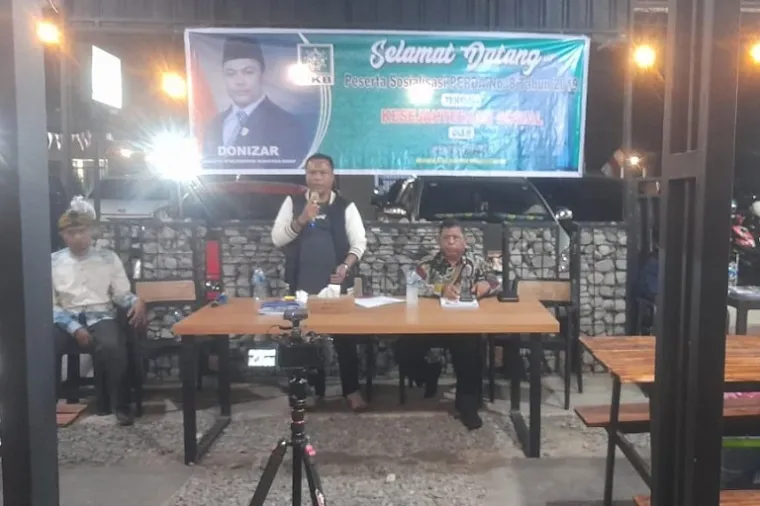 kilaskabar.com- Anggota DPRD Sumbar, Donizar menggelar sosialisasi Perda Nomor 8 Tahun 2019 tentang Penyelenggaraan Kesejahteraan Sosial, Sabtu (23/8) di salah satu kafe di kawasan Simpang Empat, Pasaman Barat.