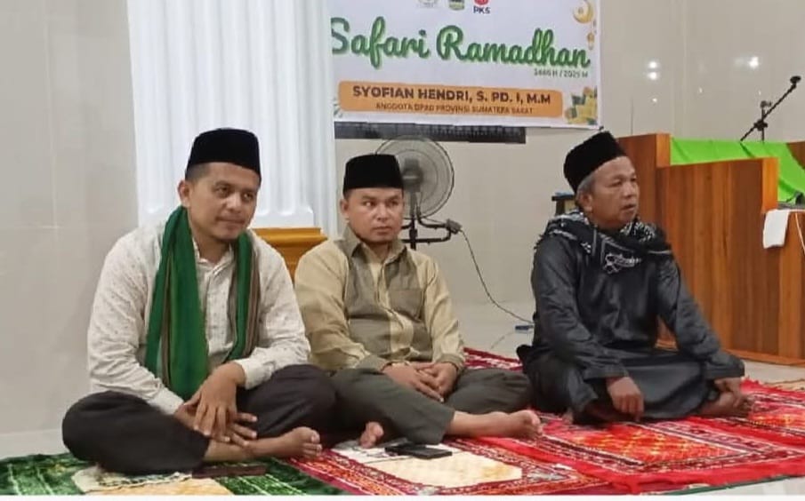 kilaskabar.com – Anggota Komisi V DPRD Sumatera Barat, Syofyan Hendri, melaksanakan kegiatan Safari Ramadhan di Masjid Al-Ikhsan, Kunpar, Kecamatan Kamang Baru, Kabupaten Sijunjung, pada Jumat (21/3/2025).