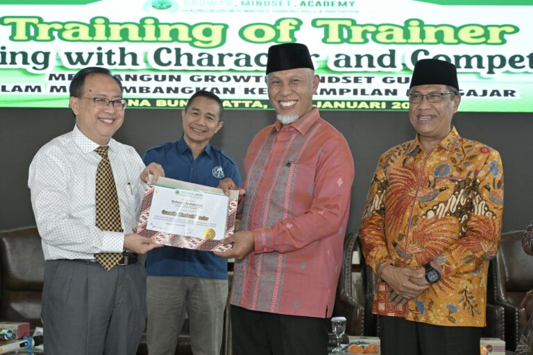 kilaskabar.com – Gubernur Sumatera Barat (Sumbar), Mahyeldi Ansharullah membuka kegiatan Training of Trainer bertajuk “Teaching with Character and Competence: Membangun Growth Mindset Guru Dalam Mengembangkan Keterampilan Mengajar” di Istana Bung Hatta, Bukittinggi, Kamis (9/1/2025).