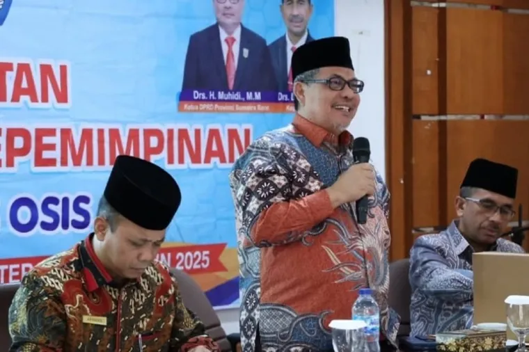 kilaskabar.com – Ketua DPRD Provinsi Sumatera Barat, Drs. H. Muhidi menghadiri sekaligus menjadi narasumber dan motivator dalam acara pembukaan Bimbingan Teknis (Bimtek) Penguatan Latihan Dasar Kepemimpinan (LDK) bagi pengurus OSIS SMK se-Sumatera Barat Tahun 2025, Sabtu (12/7) di aula SMKN 6 Padang.