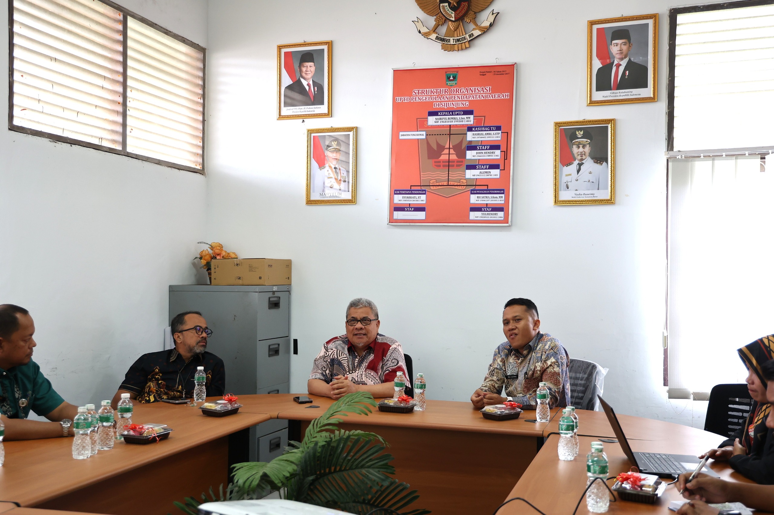 SIJUNJUNG — Ketua DPRD Provinsi Sumatera Barat (Sumbar), Muhidi, menerima aspirasi terkait kebutuhan penguatan sumber daya manusia (SDM) serta sarana dan prasarana guna mengoptimalkan pelayanan dan kinerja UPTD Samsat Sijunjung saat melakukan kunjungan kerja, Kamis (29/1).